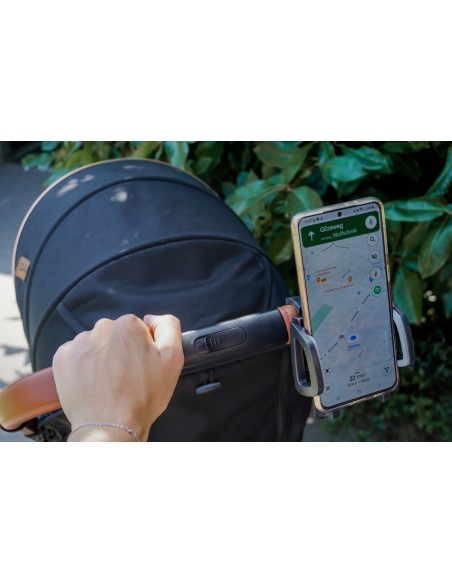 Met de telefoonhouder is je telefoon altijd bij de hand. De eenvoudig bevestigbare telefoonhouder is geschikt voor bijna elke smartphone (max. breedte van 8,5cm) en kinderwagen. Met één ontgrendelingsknop is je telefoon gemakkelijk los te maken van de houder. Weerstaat trillingen op de weg door het rubberen pad en is te draaien voor de beste weergave van de telefoon.