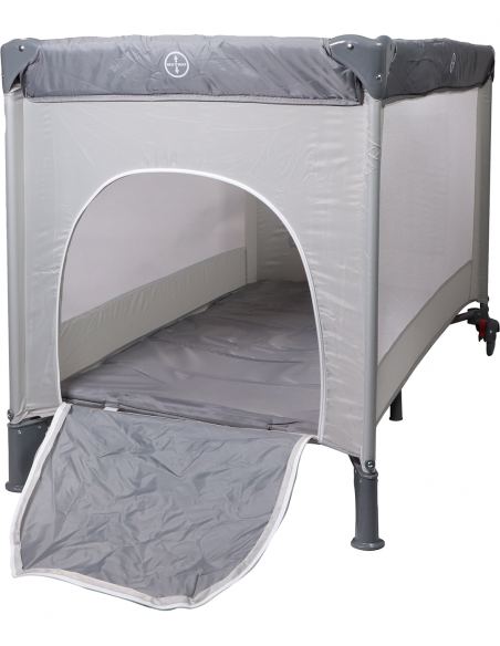 De meegeleverde bodemverhoger is erg praktisch en is te gebruiken tot 9 kg. Dankzij het kruipluik aan de zijkant kan het kindje zelf in en uit het bedje kruipen. Daarnaast heeft het campingbed een opbergzak en wieltjes zodat het campingbed gemakkelijk te verplaatsen is.