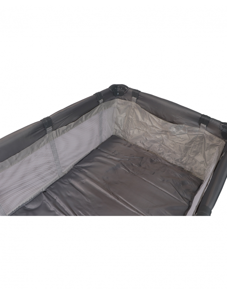 Het Deluxe campingbed is eenvoudig in- en uit te klappen volgens het 'paraplu principe'. De meegeleverde bodemverhoger zorgt ervoor dat je niet zo ver voorover hoeft te buigen om het kindje uit het bedje te tillen. Verkrijgbaar in zwart en grijs.